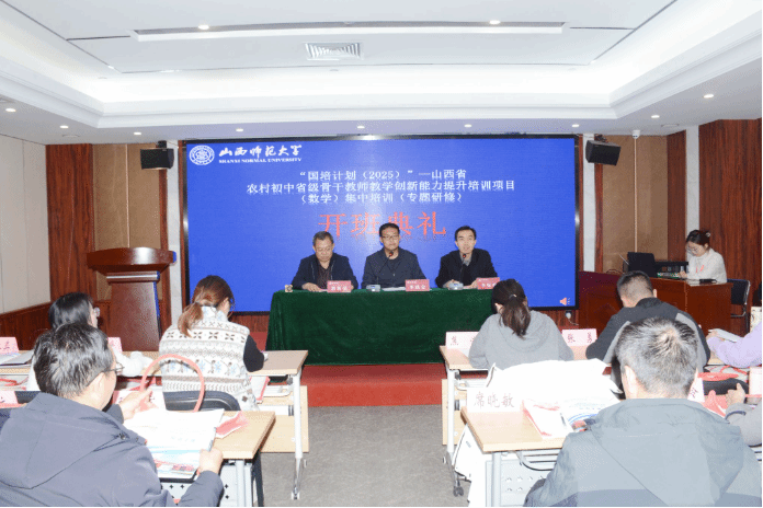 2025年12月6日,我校举行了“国培计划(2025)”—山西省农村初中省级骨干教师教学创新能力提升培训项目(数学)专题研修开班典礼。数学科学学院副院长李璞金出席开班典礼并致欢迎辞,50名参训学员及培训工作人员参加了开班典礼。开班典礼由数学科学学院硕士生导师李保勤老师主持。
